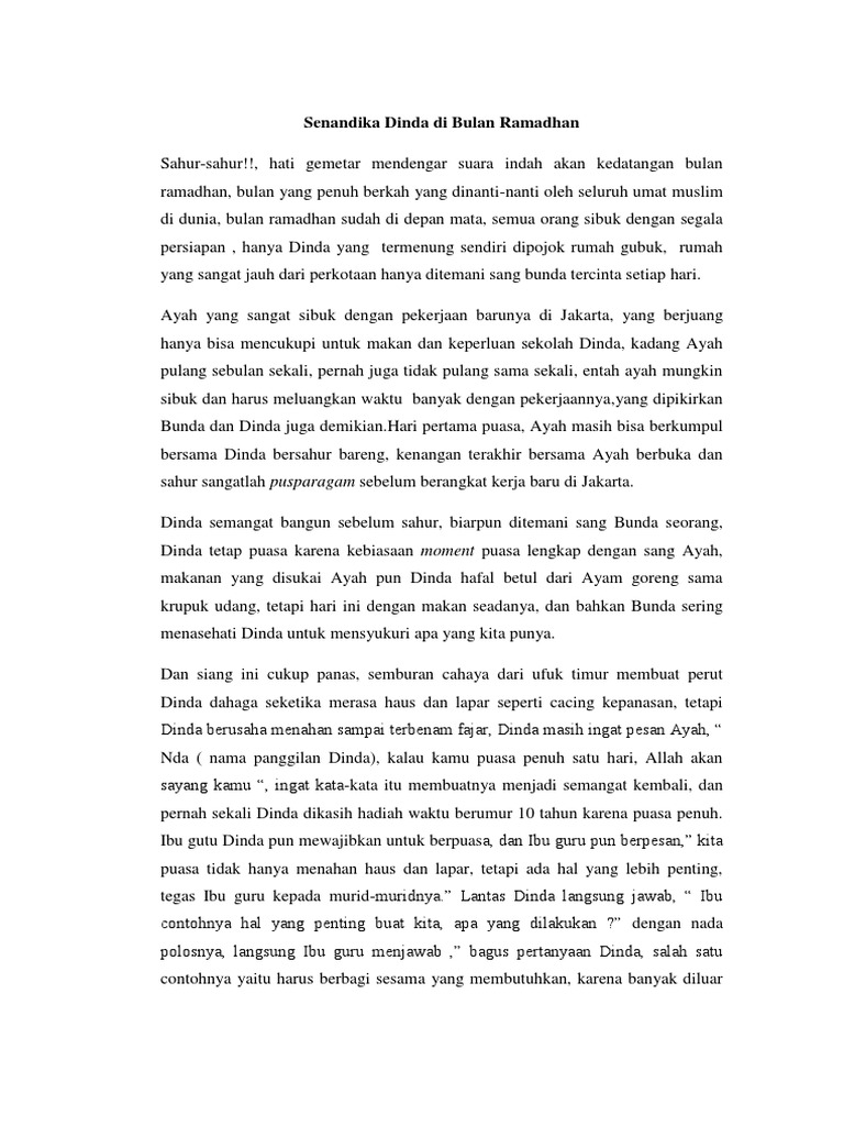 Cerpen Senandika Dinda Di Bulan Ramadhan
